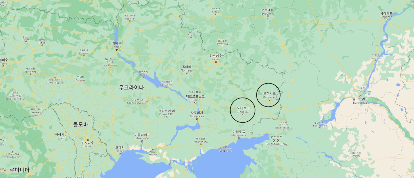도네츠크와 루간시크는 주민들의 친러성향이 강하긴해도 엄연히 우크라이나 땅이다.