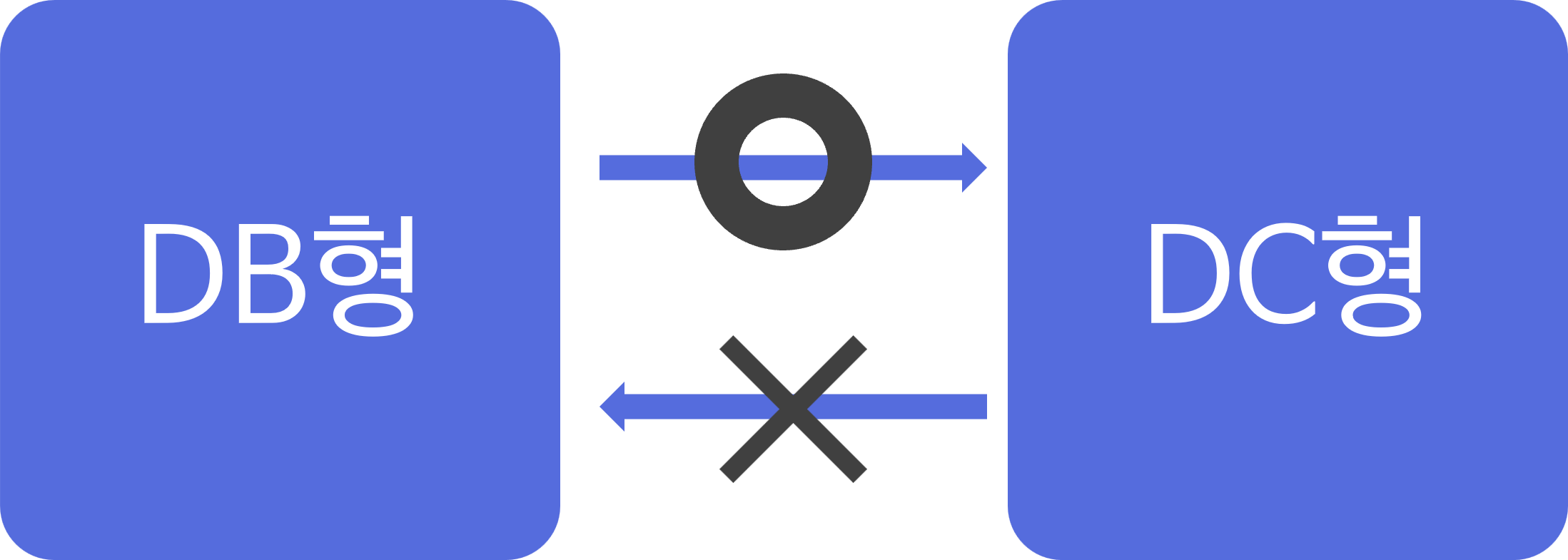 DB에서 DC로의 전환은 언제든지 가능하지만, DC에서 DB로의 전환은 불가능하다.
